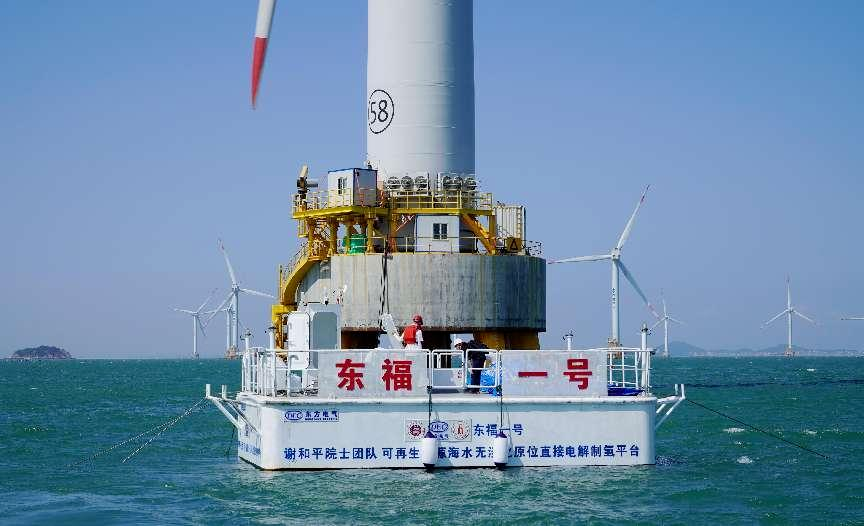 6月2日,经中国工程院专家组现场考察后确认,由深圳大学/四川大学谢和平院士团队与中国东方电气集团有限公司联合开展的全球首次海上风电无淡化海水原位直接电解制氢技术海上中试在福建兴化湾海上风电场获得成功。