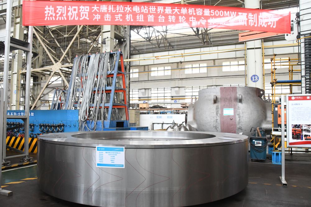 8月31日,在四川德阳的东方电气集团东方电机有限公司内,我国首台单机容量500兆瓦冲击式水电机组研发过程中,近150吨的转轮中心体锻件关键难题被攻克。